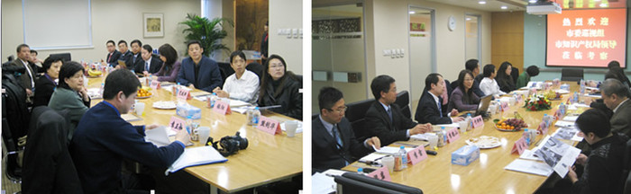 2011年12月22日,北京市委巡視組一行,在市知識產(chǎn)權(quán)局副局長王淑賢、付曉輝等領(lǐng)導的陪同下,到集佳知識產(chǎn)權(quán)代理有限公司考察調(diào)研,集佳合伙人會議主席于澤輝所長、李德山副所長、李雷副所長和梁巖部長迎接考察組一行,并出席了交流座談會。