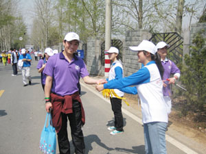 4月24日,天公十分作美。告別多日的陰霾,陽關(guān)盡情地普照著大地,仿佛也在迎接4?26的到來。感受著大自然的鳥語花香,每一位集佳的員工都神清氣爽。集佳方陣統(tǒng)一穿著組委會提供的紫色T恤,帶著繡有集佳標(biāo)志的棒球帽,手里揮舞著集佳小旗,成為活動(dòng)當(dāng)天格外醒目耀眼的色彩,也吸引了眾多媒體的閃光燈。