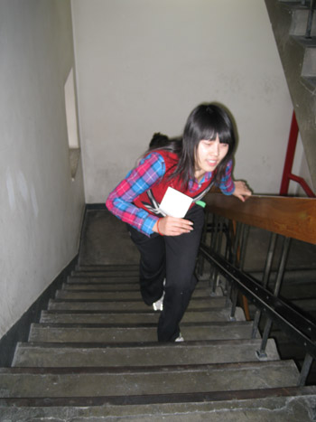 本次爬樓比賽采取兩人一組的形式進行,隨著裁判員一聲令下,集佳健兒便奮力猛沖,開始了體能大比拼。看著他們輕盈的身影,后面等待的選手便不由自主地充當(dāng)起了啦啦隊,歡呼雀躍,為他們鼓掌加油。比賽中,選手們奮力拼搏,也互相幫助,雖然爬樓不算大運動量的體育活動,但全程11層的樓梯爬起來也并非易事,即使是這樣,每一名選手都堅持到了終點。由于本次比賽的初衷就是建議大家環(huán)保節(jié)能,“少乘電梯,多爬樓梯”,因此賽前組織者就在樓梯間張貼了環(huán)保小貼士。選手們在爬樓過程中也不忘學(xué)習(xí)樓道中提示的環(huán)保小常識,在最后的環(huán)保題目小測驗中,各隊表現(xiàn)都十分出色,幾乎全部答對。