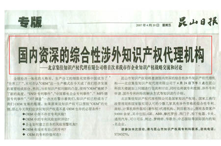 針對此次集佳首次赴昆山市作知識產權講座,當?shù)孛襟w如《昆山日報》等進行了詳細報道。