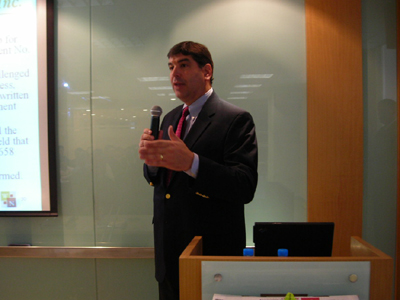 另一講座的專家是來自鹽湖城的律師事務所,該所是鹽湖城最大的知識產(chǎn)權(quán)事務所。與上一律師事務所演講內(nèi)容互為補充,該所專家側(cè)重介紹了美國專利實踐中的最新發(fā)展,美國專利改革的現(xiàn)狀,專利賠償金額情況,尤其是通過分析典型案例對美國專利審查的新動向作了詳細地說明,具有重要的實踐指導作用。