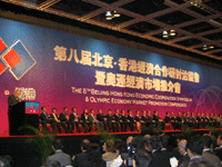 9月2日,“第八屆北京香港經(jīng)濟(jì)合作研討洽談會暨奧運(yùn)經(jīng)濟(jì)市場推介會”在香港會議展覽中心開幕,中共中央政治局委員、北京市委書記劉淇,全國政協(xié)副主席霍英東,香港特區(qū)行政長官董建華,中央政府駐港聯(lián)絡(luò)辦公室主任高祀仁等出席了開幕式。為期兩天的京港洽談會將緊密圍繞北京籌辦奧運(yùn)會和落實CEPA帶來的巨大商機(jī),向各界推介項目、促進(jìn)合作。