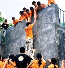 2004年5月16日,集佳知識產(chǎn)權(quán)代理有限公司廣州辦事處的全體員工來到了南國奧林匹克花園陽光拓展訓(xùn)練基地,參加了一場融認(rèn)識、行為、情緒、訓(xùn)練于一體的拓展訓(xùn)練。通過“信任背摔”、“攀巖”、“進(jìn)化論”、“求生畢業(yè)墻”等各種現(xiàn)代化的“體驗學(xué)習(xí)”,讓大家充分體驗到了突破極限的樂趣,更自信地面對人生,同時,這次拓展訓(xùn)練也激發(fā)了大家對心理、思維習(xí)慣的重新認(rèn)識,鍛煉出了一支勇敢頑強(qiáng)、拼搏進(jìn)取的團(tuán)隊。 拓展活動一經(jīng)開始,全體員工在培訓(xùn)師的指導(dǎo)下,自由組合成三個小團(tuán)隊,分別叫做“閃電”、“蝙蝠俠”、和“終結(jié)者”,并且每個組都將各組的圖標(biāo)畫在隊旗上,同時創(chuàng)作了隊歌、隊訓(xùn)。 活動進(jìn)行的第一個項目是“信作背摔”,即每個人均須站在1.5米高的臺上向后面仰倒,由地面上的本組其他隊員展臂接住。這個項目主要是鼓勵個人克服無謂的心理恐懼突破自我,同時建立和體驗對團(tuán)隊的信任感。這是一個具有一定風(fēng)險和震撼力很大的自我挑戰(zhàn)項目。我們站在臺上,很多人都不敢倒,害怕隊員接不住,然而更多的是無法突破自我,無法戰(zhàn)勝自我,是心里上的不敢。此時,全體隊員迅速調(diào)整好心態(tài),樹立團(tuán)隊責(zé)任感,在個人與團(tuán)隊每個組員中建立充分的信任,克服個人的膽怯心理,全體隊員一個接一個順利地完成了“信作背摔”。接下來我們?nèi)齻€團(tuán)隊分別進(jìn)行了“樊巖”、“天使之繩”、“高低V空中對掌行”,這些都是合作項目,要求必須兩個人互相支持互相配合才有可能完成的,充分展現(xiàn)了隊員間的默契與合作精神。 真正考驗大家和震憾大家的是最后一個項目“勝利畢業(yè)墻”,這個項目要求公司全體員工一起參加,在規(guī)定的時間內(nèi),團(tuán)隊的所有人只憑借相互間的合作,從地面攀上離地高達(dá)4米的墻頂上。如果有一個人沒有攀上或超過了規(guī)定的時間,那么所有的人將不能畢業(yè),也就是說有一個上不去則全體失敗。這個項目主要是激勵和強(qiáng)化頑強(qiáng)的的斗志和互助取勝團(tuán)結(jié)必勝的信念。剛開始,當(dāng)我們看到那面高達(dá)4米并且光禿禿沒有任何攀爬借助物的畢業(yè)墻時,很多人都覺得這簡直是不可能的,特別是培訓(xùn)師將規(guī)定時間定為30分鐘的時候,我們真的絕望了! 就在這時張總站了起來,他告訴我們只要大家齊心協(xié)力就沒有辦不到的事,接下來我們明確了目標(biāo),制定戰(zhàn)略——由體質(zhì)好壯實的男生輪流當(dāng)人墻;先上去兩個手勁大的做接應(yīng);女生先上、男生后上;體重大的最先、體重輕且高的男生壓尾;其它人員伸出雙臂圍在人墻和攀爬的人員周圍做好保護(hù)工作。在大家的共同努力和配合之下,第一個人上去了、第二個人上去了、第三個人接著也上來了……終于最后一個人攀上來了!當(dāng)培訓(xùn)師報出我們所用的時間時,大家激動得歡呼起來!19分20秒!!我們只用了19分20秒全體39個隊員就一個不少的成功攀上的求生畢業(yè)墻,我們畢業(yè)了!連我們自己都不敢相信,但這是真的,我們做到了,真的做到了!培訓(xùn)師驚嘆的稱贊到:廣州集佳是一支可以創(chuàng)造神話的團(tuán)隊! 拓展訓(xùn)練結(jié)束后,每一個員工都重新對團(tuán)隊做了思考,這次活動使每一個人都受益匪淺:1、在今后的工作特別是團(tuán)隊中對個人的優(yōu)勢和弱項應(yīng)保持正面和積極的心態(tài)。2、要樹立相互配合、互相支持的團(tuán)隊精神和整體意識;充分認(rèn)識到團(tuán)隊合力將創(chuàng)造1+1>2的效績表現(xiàn)。3、改善了人際關(guān)系,形成積極向上的組織氛圍4、改進(jìn)了組織內(nèi)部的溝通與信息交流,掌握團(tuán)體創(chuàng)新和克服團(tuán)隊溝通障礙的技巧。5、使團(tuán)隊在面對各種變革和挑戰(zhàn)時更從容有序。6、獲得了一段愉快難忘的團(tuán)隊生活經(jīng)歷。這些深刻的道理和觀念將牢牢地扎根在公司和每個員工的潛意識中,并且能在日后的工作中與我們集佳的文化相結(jié)合相應(yīng)用,共同為實現(xiàn)集佳的愿景去奮斗去努力,即做國內(nèi)頂尖、世界一流的知識產(chǎn)權(quán)機(jī)構(gòu);創(chuàng)造百年老店;造就專業(yè)的知識產(chǎn)權(quán)人才! 我們深信:企業(yè)最基本的競爭優(yōu)勢既不是來自技術(shù)也不是來自傳奇式的英雄,而是來自它的團(tuán)隊,而集佳就是這樣一支能創(chuàng)造神話的團(tuán)隊!