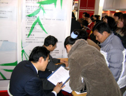 2004年2月14,是西方的情人節(jié),而在北京中國國際展覽中心里,1700余家企業(yè)與近10萬名求職人才也做了一次情感交流,熱烈火爆的現(xiàn)場氣氛成為今春京城最引人矚目的焦點。在這個周末招聘會云集,北京城內(nèi)掀起了一股求職和招賢的熱潮,而為期兩天的國展招聘會堪稱熱潮中的亮點,無論規(guī)模或參展人數(shù)都能躋身首位。