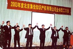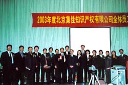 2003年,對于集佳來說,是向國際化企業(yè)邁進(jìn)的關(guān)鍵一年,集佳人上下同心、拼搏奮進(jìn),戰(zhàn)勝了“非典”對我們的巨大挑戰(zhàn)和代理機(jī)構(gòu)放開的嚴(yán)峻考驗(yàn),再次成為商標(biāo)代理量的全國第一。集佳合伙人會(huì)議主席于澤輝在2003年度工作報(bào)告中,詳細(xì)闡述了集佳在過去的一年里取得的成績和進(jìn)步,按部門總結(jié)了2003年工作的優(yōu)勢和不足,并詳細(xì)分析了行業(yè)前景、國際環(huán)境和集佳的優(yōu)勢與發(fā)展?jié)摿Γ辜讶藢υ?年內(nèi)把集佳發(fā)展成為世界前100名知識產(chǎn)權(quán)代理機(jī)構(gòu)的目標(biāo)充滿信心。