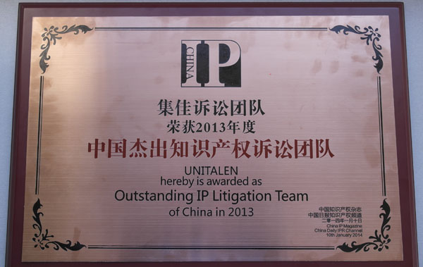 由《中國日報》與《中國知識產權》雜志社共同主辦的第四屆中國知識產權新年論壇于2014年1月10日-11日在北京民族飯店舉行。在本屆論壇上, 集佳律師事務所以其專業(yè)的訴訟水準、公認的業(yè)務和研究能力,被評選為“2013年度中國杰出知識產權團隊”。