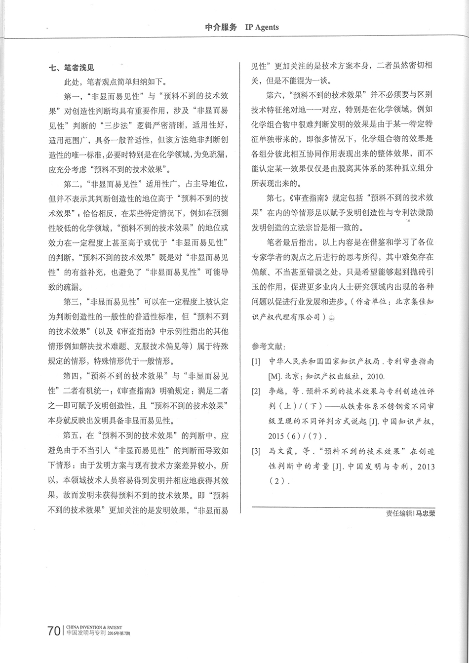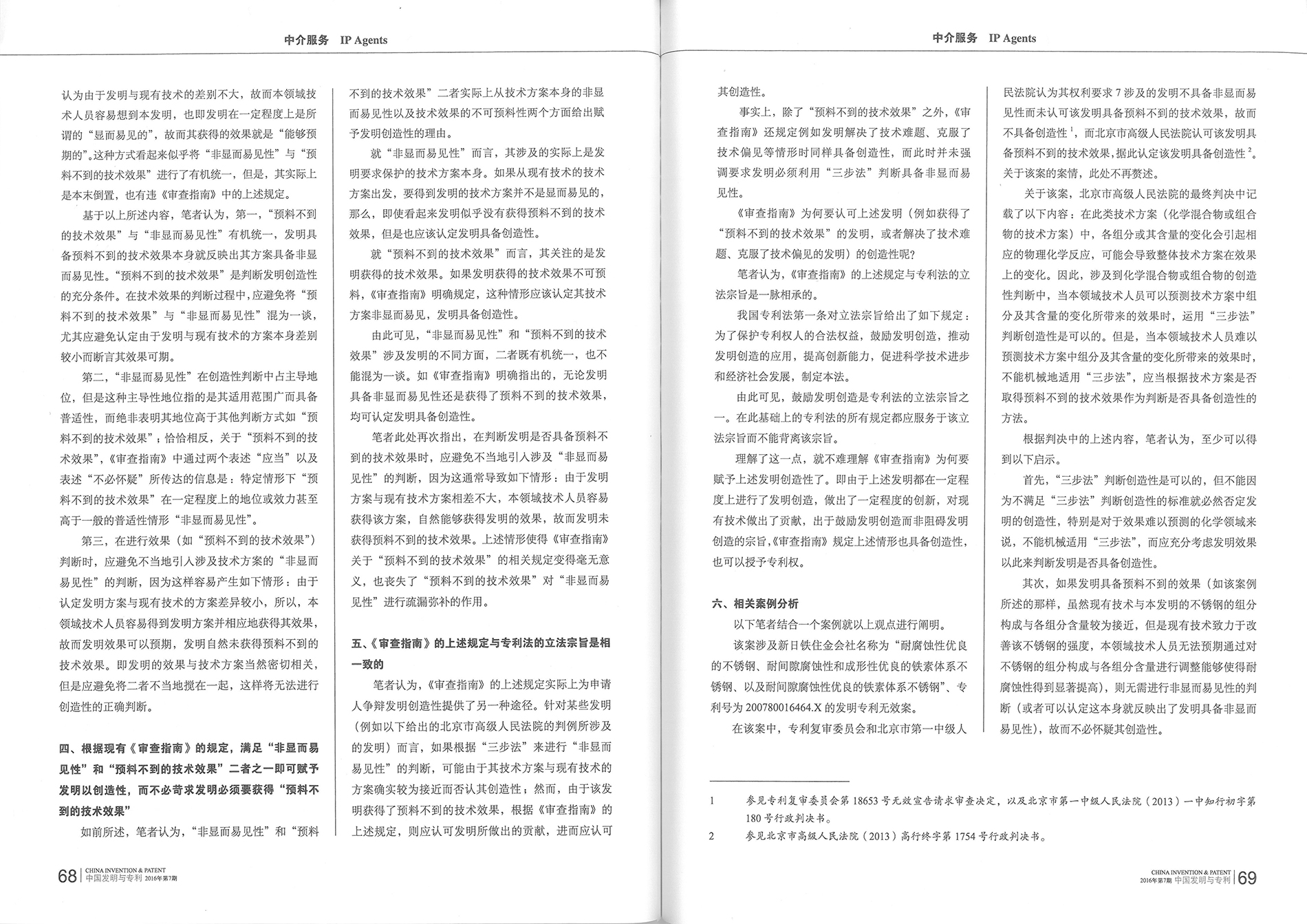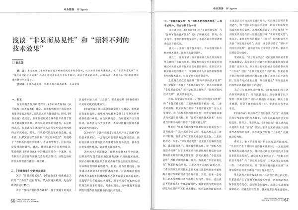 集佳文章《淺談“非顯而易見性”和“預(yù)料不到的技術(shù)效果”》在《發(fā)明與專利》發(fā)表