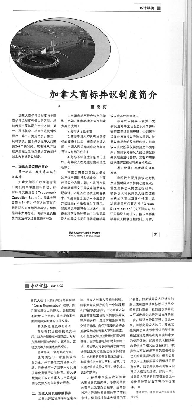 《中華商標(biāo)》:加拿大商標(biāo)異議制度簡介