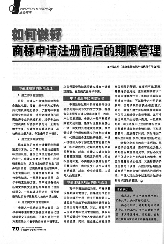 《中國發(fā)明與專利》:如何做好商標(biāo)申請注冊前后的期限管理