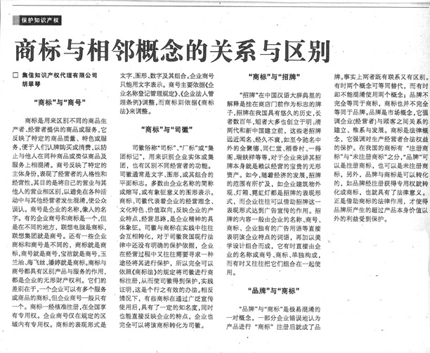 《國(guó)際商報(bào)》:商標(biāo)與相鄰概念的關(guān)系和區(qū)別