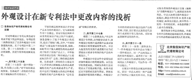 《國(guó)際商報(bào)》:外觀設(shè)計(jì)在新專(zhuān)利法中更改內(nèi)容的淺析