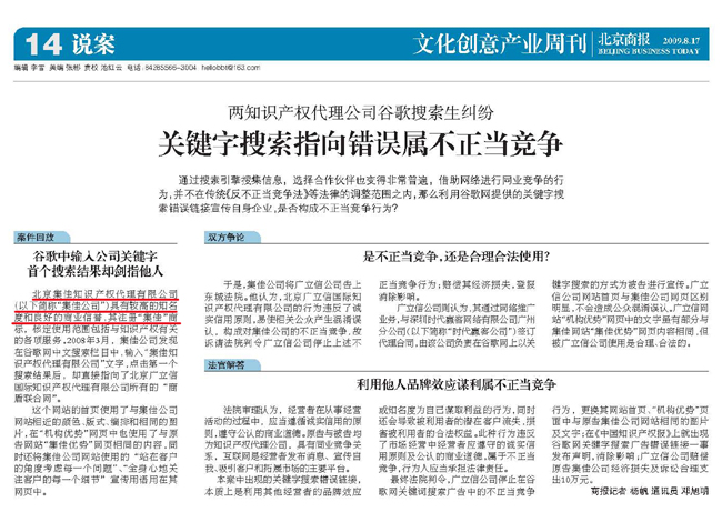 《北京商報(bào)》:關(guān)鍵詞搜索指向錯(cuò)誤屬不正當(dāng)競爭