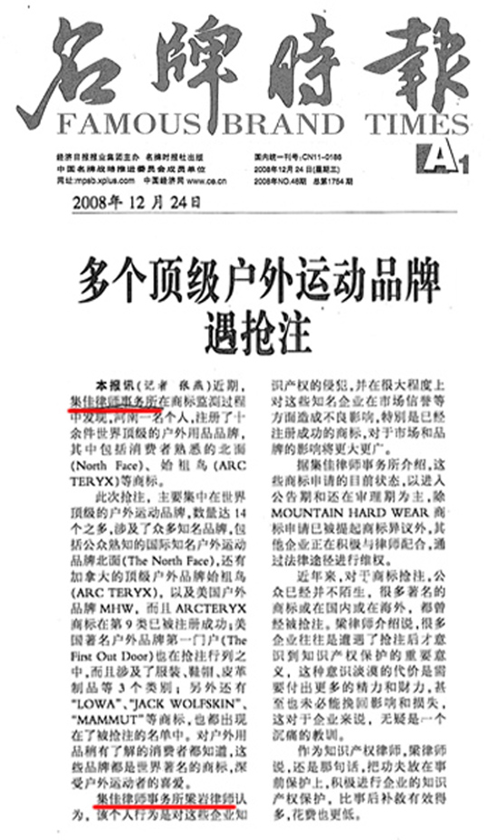 《名牌時(shí)報(bào)》:多個(gè)頂級(jí)戶外運(yùn)動(dòng)品牌遇搶注