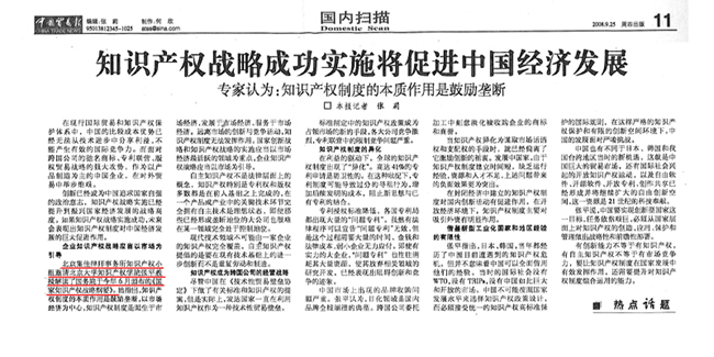 《中國貿易報》:知識產權戰(zhàn)略成功實施將促進中國經(jīng)濟發(fā)展