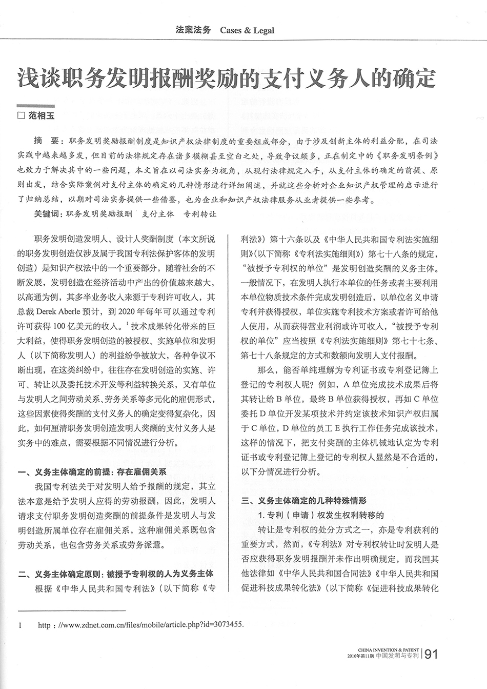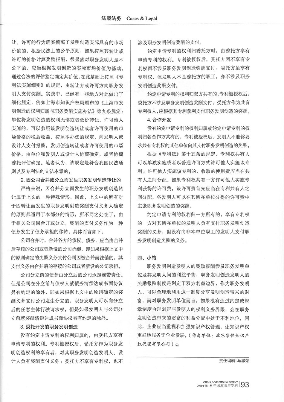 集佳文章《淺談職務(wù)發(fā)明報(bào)酬獎勵的支付義務(wù)人的確定》在《中國發(fā)明與專利》發(fā)表