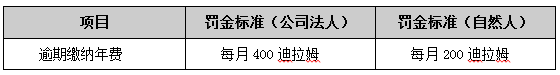 有關(guān)于年費繳納罰金標(biāo)準(zhǔn),見下表: