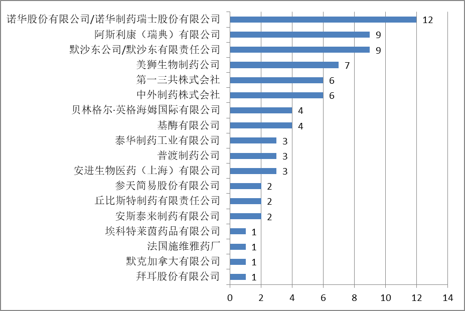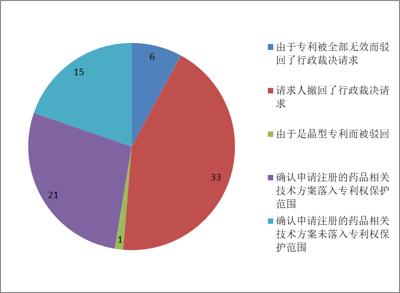 這里統(tǒng)計的僅是做出了確認(rèn)申請注冊的藥品相關(guān)技術(shù)方案是否落入專利權(quán)保護(hù)范圍結(jié)論的裁決,其他案件無法統(tǒng)計。