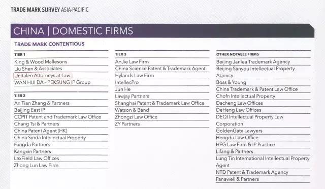 日前,全球權威知識產(chǎn)權雜志Managing Intellectual Property (MIP)公布“2017知識產(chǎn)權之星” 商標業(yè)務排行榜,集佳在“商標申請”和“商標訴訟”領域穩(wěn)居中國區(qū)第一梯隊(Tier 1)。