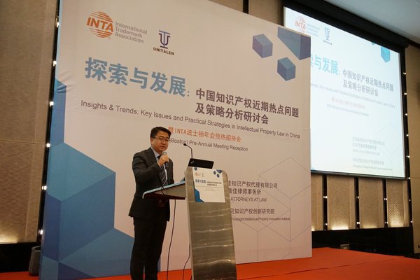 隨后,李永波先生作為主辦方INTA代表發(fā)言。他首先感謝集佳多年來對(duì)INTA相關(guān)工作的大力支持,同時(shí)他還表示,INTA 在近幾年與中國(guó)的聯(lián)系越來越密切,這都離不開所有業(yè)內(nèi)人士和專家們的關(guān)注與支持,在此向所有同行以及業(yè)界人士表達(dá)誠(chéng)摯的謝意。李永波先生介紹,2019年INTA第141屆年會(huì)活動(dòng)將于5月18~22日在美國(guó)波士頓舉行,希望通過本次預(yù)熱活動(dòng),使國(guó)內(nèi)的代理機(jī)構(gòu)對(duì)國(guó)際商標(biāo)協(xié)會(huì)有更深入的了解,同時(shí)希望廣大企業(yè)和業(yè)界同仁積極關(guān)注并參與INTA年會(huì)活動(dòng)。