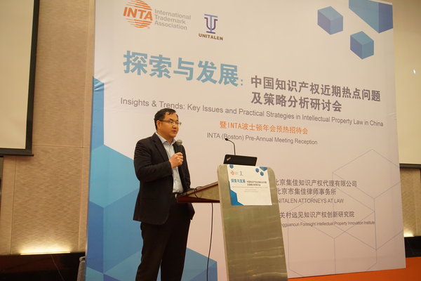 3月22日下午,由國(guó)際商標(biāo)協(xié)會(huì)(INTA)、北京集佳知識(shí)產(chǎn)權(quán)代理有限公司、北京市集佳律師事務(wù)所、中關(guān)村遠(yuǎn)見知識(shí)產(chǎn)權(quán)創(chuàng)新研究院共同舉辦的2019 INTA 年會(huì)預(yù)熱酒會(huì)在北京成功舉行。INTA中國(guó)全球咨詢理事會(huì)聯(lián)合主席、不正當(dāng)競(jìng)爭(zhēng)委員會(huì)副主席李永波先生出席,北京高院法官、北京知識(shí)產(chǎn)權(quán)法院法官、知名高校法學(xué)院教授、企業(yè)界代表、業(yè)內(nèi)同仁共100余位嘉賓參加了會(huì)議。