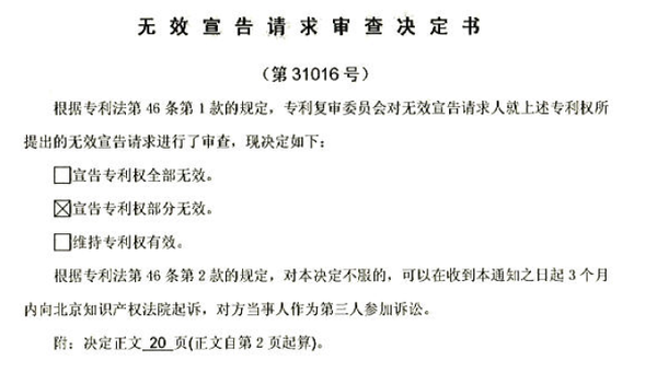 于是,最終作出了“宣告專利權(quán)部分無效”的審查決定。
