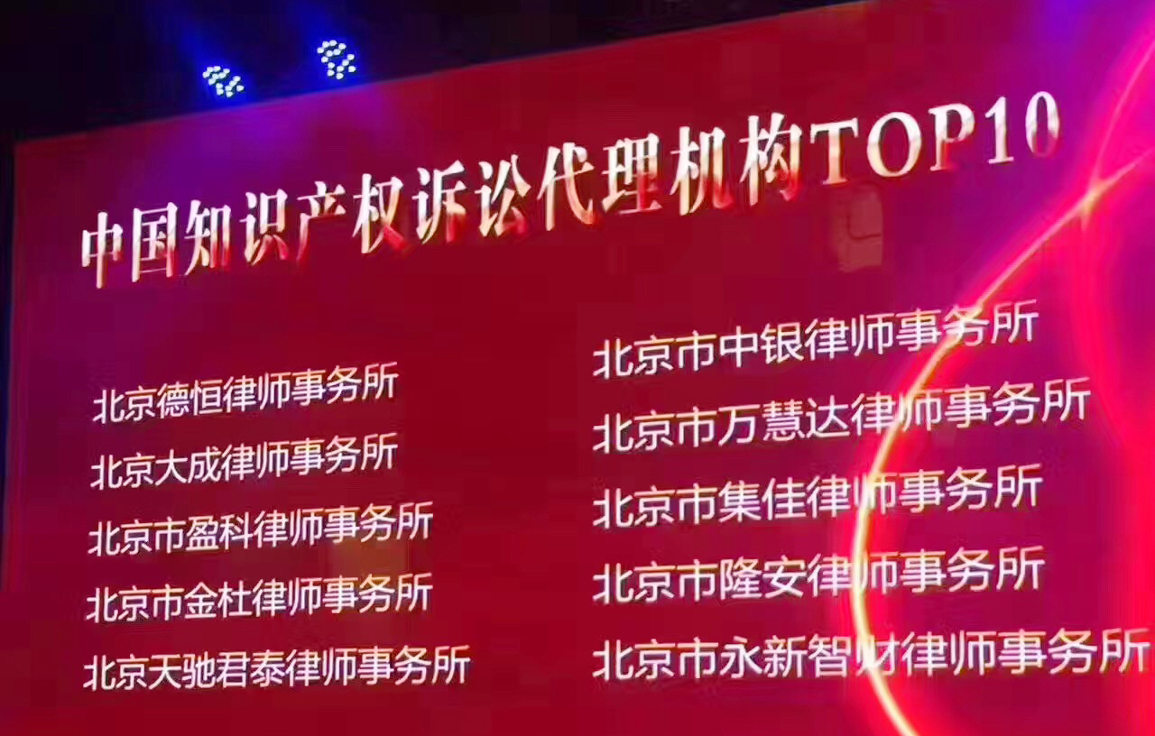 自2005以來,集佳代理的知識產(chǎn)權(quán)訴訟案件每年都會入選各地高級人民法院評選的十大知識產(chǎn)權(quán)案件之列;自2009年至今的每一年度,集佳代理的知識產(chǎn)權(quán)訴訟案件都會入選最高人民法院評選的十大知識產(chǎn)權(quán)案件之列;2013年至2016年,集佳連續(xù)四年獲得“中國杰出知識產(chǎn)權(quán)訴訟團隊”殊榮;2015年全球權(quán)威知識產(chǎn)權(quán)雜志MIP公布的2014年調(diào)查數(shù)據(jù)顯示,集佳在商標(biāo)申請、商標(biāo)訴訟和版權(quán)三項調(diào)查中均位列中國區(qū)第一梯隊。此外,MIP于2016年公布的“2016年知識產(chǎn)權(quán)之星商標(biāo)業(yè)務(wù)排行榜”顯示集佳同時位列商標(biāo)爭議業(yè)務(wù)及商標(biāo)訴訟業(yè)務(wù)中國區(qū)第一梯隊;在商標(biāo)領(lǐng)域權(quán)威雜志W(wǎng)TR發(fā)布的年度“WTR 1000”全球名錄中,集佳以其在商標(biāo)領(lǐng)域無可爭議的綜合實力連續(xù)多年入選中國區(qū)金牌事務(wù)所。