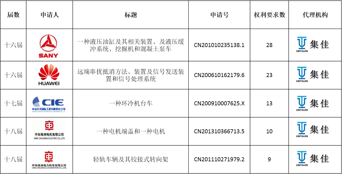 下表為集佳代理的獲獎專利清單。祝賀獲獎的專利權人和發(fā)明人。