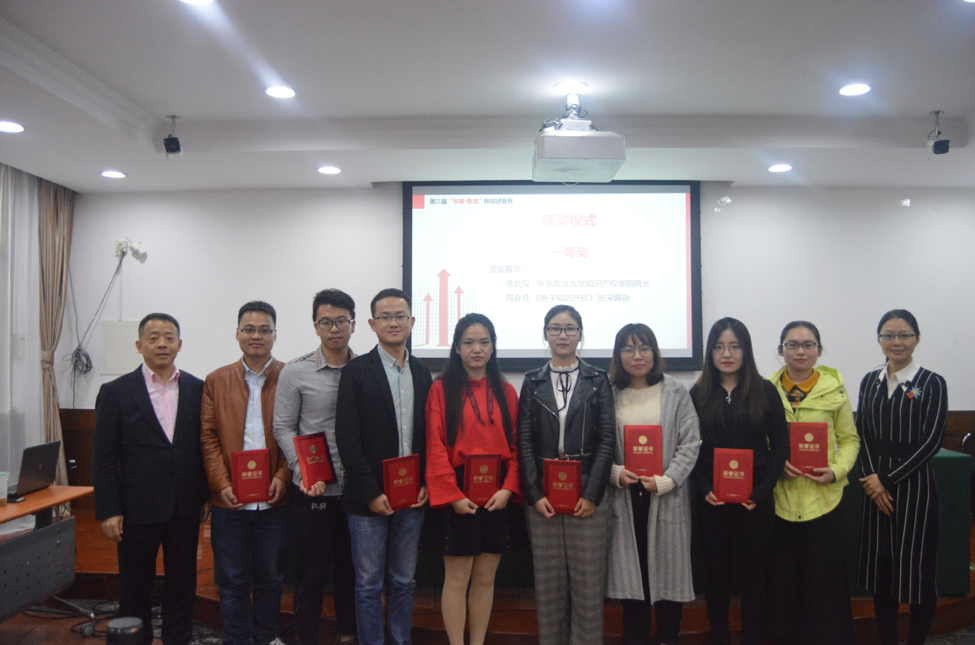 華東政法大學知識產權學院院長黃武雙教授、北京市集佳律師事務所上海分所李文紅主任、《電子知識產權》資深編輯周春慧、同濟大學張韜略副教授、南京理工大學郭鵬鵬副教授出席了本次儀式,華東政法大學知識產權學院副院長唐春副教授、尹臘梅副教授擔任主持,各競賽獲獎小組成員們參與了本次儀式。