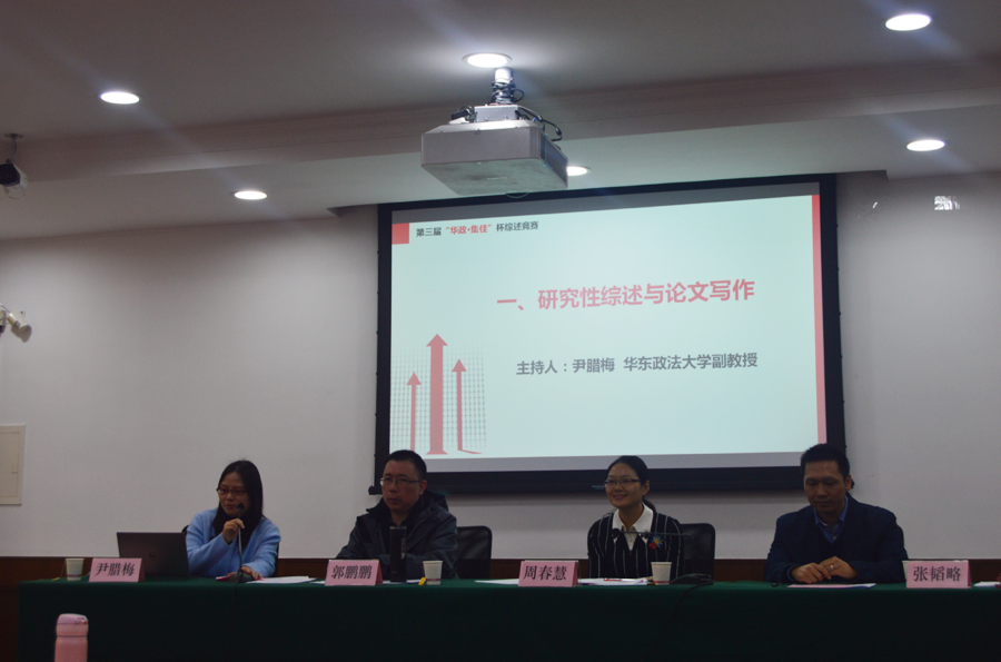 交流環(huán)節(jié)分為兩部分,第一部分主題為“研究性綜述與論文寫作”,由尹臘梅副教授擔任主持。同濟大學張韜略副教授、《電子知識產權》周春慧編輯與南京理工大學郭鵬鵬副教授紛紛結合自己學術研究與工作經(jīng)歷,闡明了綜述性文章寫作的重要性,并分享自己的撰寫經(jīng)驗與心得。第二部分主題為“綜述寫作經(jīng)驗分享”,由華東政法大學研究生李旭穎擔任主持。中南財經(jīng)政法大學李安同學、上海交通大學張斯瑋同學、華東政法大學姚藝同學、華東政法大學李若源同學結合自己的獲獎綜述作品,對撰寫過程中的心得經(jīng)驗進行了分享。