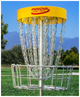 Disc Golf案中原告所要求保護的產(chǎn)品設(shè)計是下圖所示的“飛碟高爾夫”(即DiscGolf)運動的目標,在運動中,運動員需要將飛碟扔進該目標中。該產(chǎn)品設(shè)計的主要設(shè)計特征在于,由中心的桿、下部環(huán)繞桿的籃和懸掛在籃上的一組鏈條組成,鏈條上端連接成圈環(huán)繞在桿的頂部,鏈條下端連接在桿的下端,鏈條自然地下垂成拋物線狀。