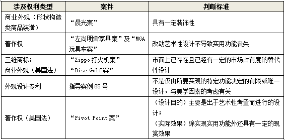 表2 工業(yè)產(chǎn)品外觀設(shè)計“非功能性”標準排列