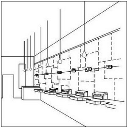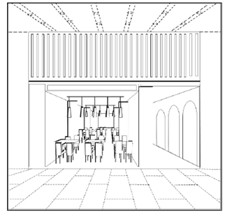 如提交店面外觀和內(nèi)部裝潢的立體商標(biāo)申請,可通過在圖片中表明虛實(shí)線,同時(shí)通過商標(biāo)描述告知“虛線僅表示店面形狀的示例,并不構(gòu)成商標(biāo)的一部分”,以表明要求受該立體商標(biāo)保護(hù)的部分僅為以下圖片中的實(shí)線,如以下示例2和示例3所示。