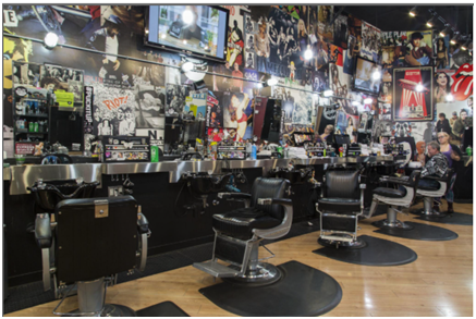 商標(biāo)描述:該商標(biāo)包括一家理發(fā)店的內(nèi)部設(shè)計(jì),包括金屬籠中的蒸氣鎖燈,帶裸露燈泡的吊燈,工具箱,帶有切入口和切出口的不銹鋼工作臺面,垂直的墻面招牌和展示架,音樂主題海報(bào)展示墻。虛線所示的特征不作為商標(biāo)的一部分,僅用于顯示這些特征的位置。