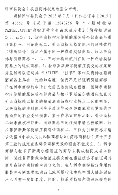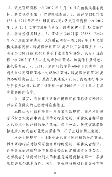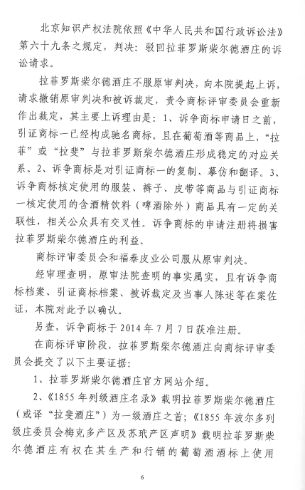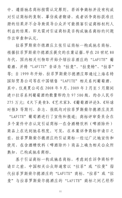 自2016年以來(lái),商評(píng)委、北京知識(shí)產(chǎn)權(quán)法院已經(jīng)先后在十幾個(gè)裁定或行政判決中認(rèn)定“LAFITE”為馳名商標(biāo),但大多還在行政訴訟程序之中。本案是首個(gè)終審判決,對(duì)“LAFITE”在中國(guó)的馳名商標(biāo)保護(hù)之路,具有里程碑式的重要意義。