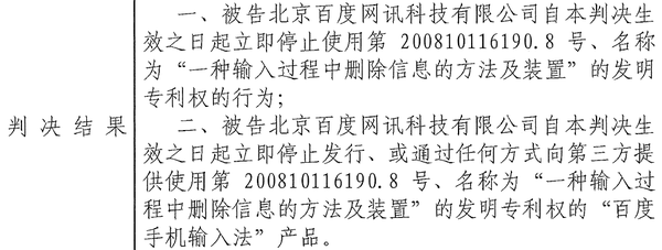 集佳代理搜狗公司處理的“一種輸入過(guò)程中刪除信息的方法及裝置”發(fā)明專利(ZL200810116190.8)無(wú)效一案,已于近日收到復(fù)審委做出的審查決定,維持專利權(quán)全部有效。該專利歷經(jīng)請(qǐng)求人提出的三次無(wú)效宣告請(qǐng)求,集佳均代理搜狗公司并獲得三次連續(xù)勝利!同時(shí),日前北京知識(shí)產(chǎn)權(quán)法院已針對(duì)該涉案專利做出一審判決,判決百度公司立即停止侵權(quán)行為,即立即停止發(fā)行、或通過(guò)任何方式向第三方提供使用涉案專利權(quán)的“百度手機(jī)輸入法產(chǎn)品”!