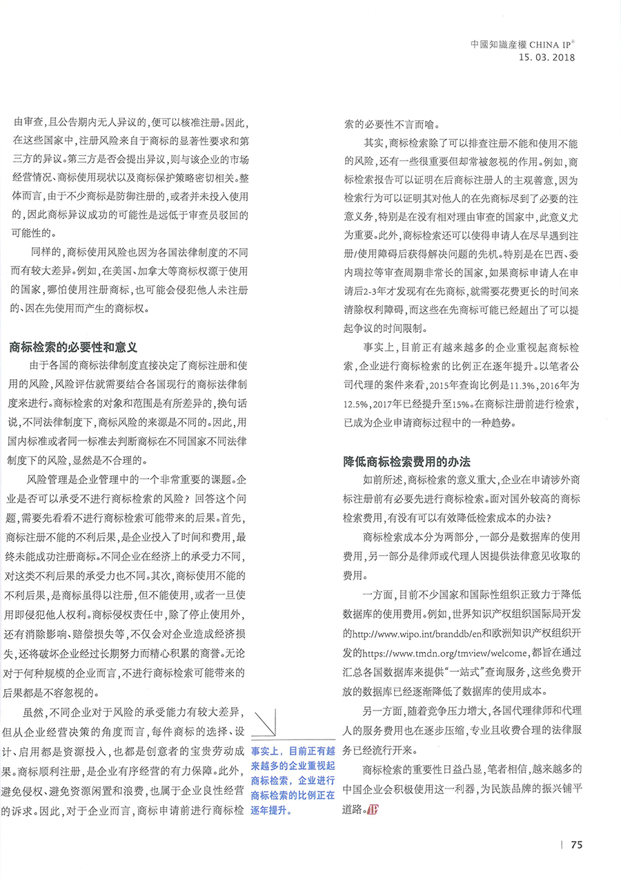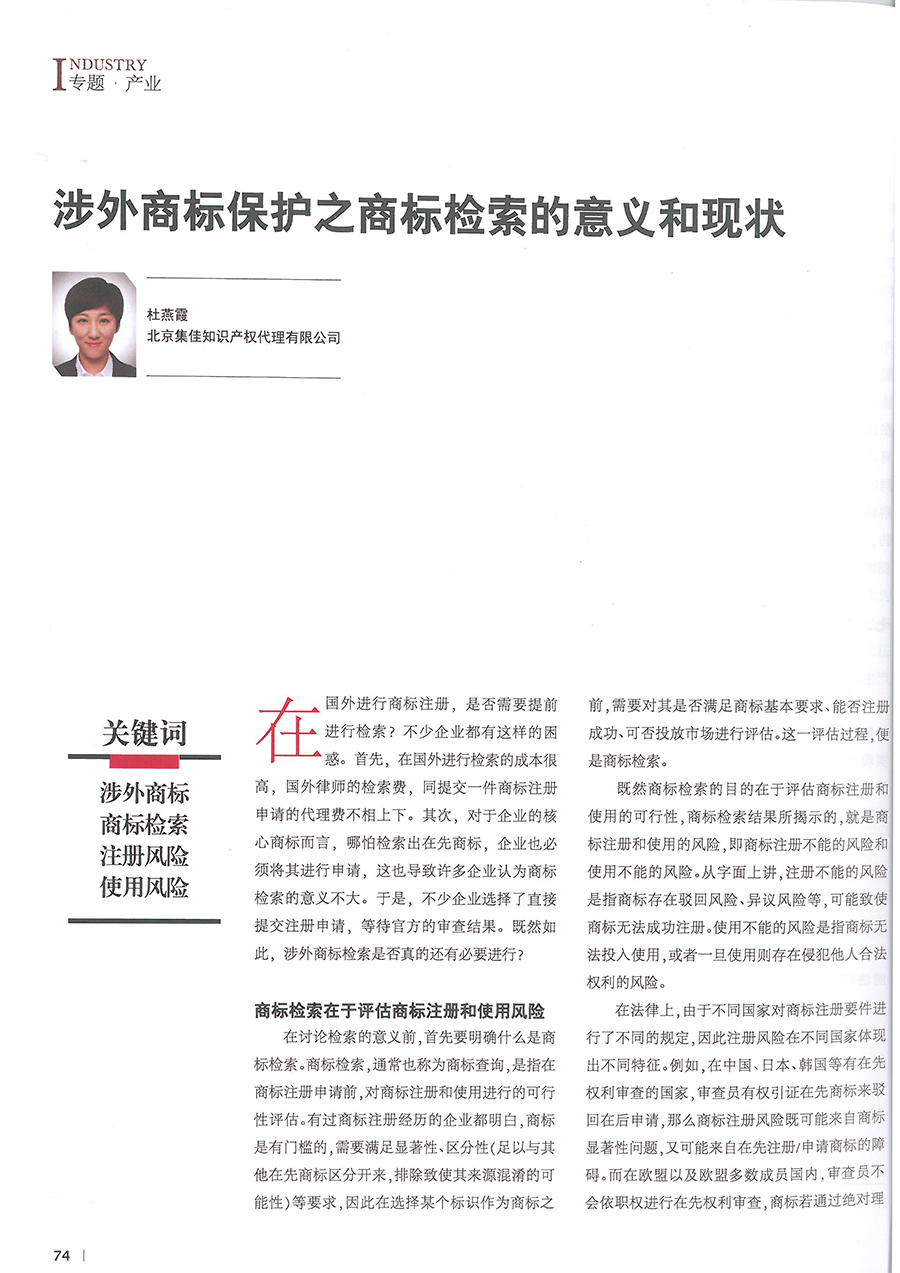 集佳文章《涉外商標(biāo)保護(hù)之商標(biāo)檢索的意義和現(xiàn)狀》在《中國知識(shí)產(chǎn)權(quán)》發(fā)表