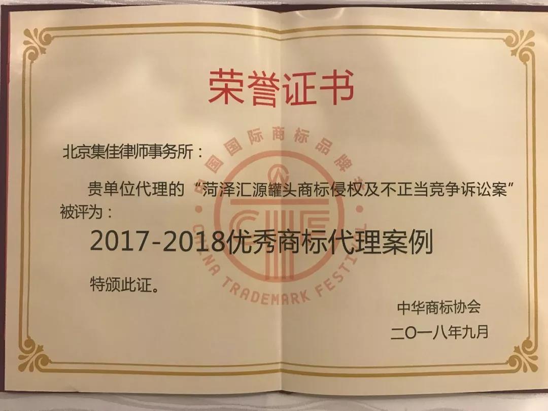 2018中國(guó)國(guó)際商標(biāo)品牌節(jié)進(jìn)行到第二日,又一令人期待的獎(jiǎng)項(xiàng)頒布了。中華商標(biāo)協(xié)會(huì)梳理和回顧了過(guò)去一年商標(biāo)領(lǐng)域發(fā)生的重大典型事件、案件,從參加申報(bào)的眾多商標(biāo)代理案例中評(píng)選出了26件年度商標(biāo)典型案例,以此樹(shù)立優(yōu)秀案例標(biāo)桿,發(fā)揮示范指導(dǎo)效應(yīng)。集佳律師事務(wù)所代理的“菏澤匯源罐頭商標(biāo)侵權(quán)及不正當(dāng)競(jìng)爭(zhēng)訴訟案”成功入選“2017-2018優(yōu)秀商標(biāo)代理案例”。