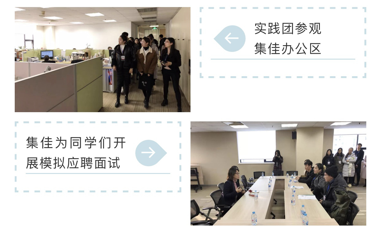 座談會后,李珊珊老師帶領大家參觀了集佳辦公區(qū),觀摩公司日常工作,了解集佳處理知識產(chǎn)權代理事務的相關流程。之后,應同學們的要求,集佳專門開展了一場生動的模擬應聘面試,讓實踐團的同學們通過現(xiàn)場體驗,了解企業(yè)對知識產(chǎn)權領域的人才需求,發(fā)現(xiàn)自己的不足之處,有的放矢加以提高。大家表示,在進入職場前能夠如此近距離地接觸與所學專業(yè)密切相關的職業(yè)指導,真是獲益良多。
