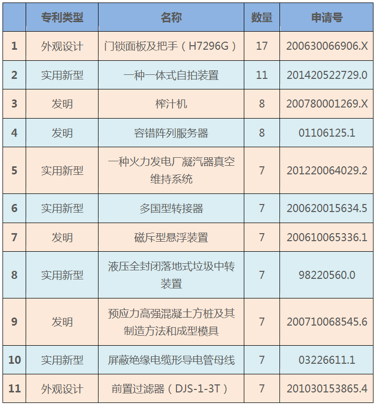 專利被無(wú)效宣告請(qǐng)求的次數(shù)較多,一般說(shuō)明專利穩(wěn)定性較好(否則會(huì)被輕易無(wú)效)且具有較高價(jià)值(否則不會(huì)被多次請(qǐng)求無(wú)效)。在被無(wú)效宣告請(qǐng)求次數(shù)最多的專利中,與發(fā)明專利相比,實(shí)用新型、外觀設(shè)計(jì)的占比并不少。可見(jiàn),撰寫水平高的實(shí)用新型、外觀設(shè)計(jì)專利對(duì)專利權(quán)人的價(jià)值并不小于發(fā)明專利。