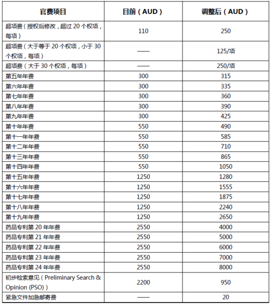 2020年10月1日起,澳大利亞知識(shí)產(chǎn)權(quán)局將上調(diào)專(zhuān)利、工業(yè)外觀(guān)設(shè)計(jì)及商標(biāo)的官費(fèi)(僅有少部分費(fèi)用有所下調(diào))。這次費(fèi)用調(diào)整涉及了電子支付方式(“首選方式”)和通過(guò)“其他方式”支付兩種支付方式,在此主要列舉采用電子方式支付官費(fèi)涉及的費(fèi)用調(diào)整項(xiàng)目。