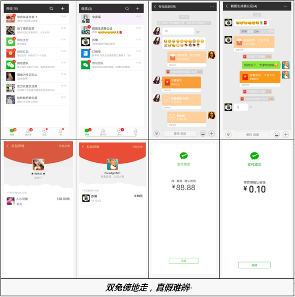 近年來(lái),移動(dòng)應(yīng)用市場(chǎng)上出現(xiàn)一系列以智能生成騰訊微信軟件界面截圖為功能賣(mài)點(diǎn)的移動(dòng)應(yīng)用。此種應(yīng)用復(fù)制微信各功能界面的美術(shù)素材并提供相應(yīng)的編輯模塊,使其使用者可通過(guò)編輯數(shù)據(jù)內(nèi)容快速、大量生成包括微信對(duì)話(huà)記錄、微信紅包記錄、微信支付記錄等多種虛假微信截圖。