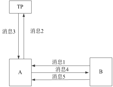 該技術方案可以概括為:裝置TP可以驗證裝置A和B的身份,通過在通信系統(tǒng)中發(fā)送消息1到消息5,實現(xiàn)裝置A與B的相互驗證。