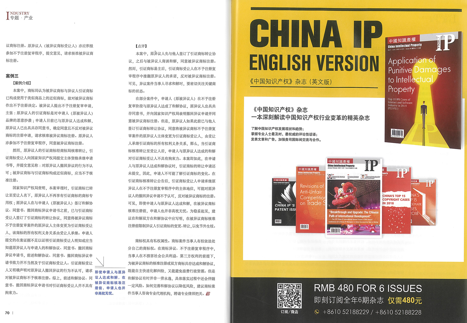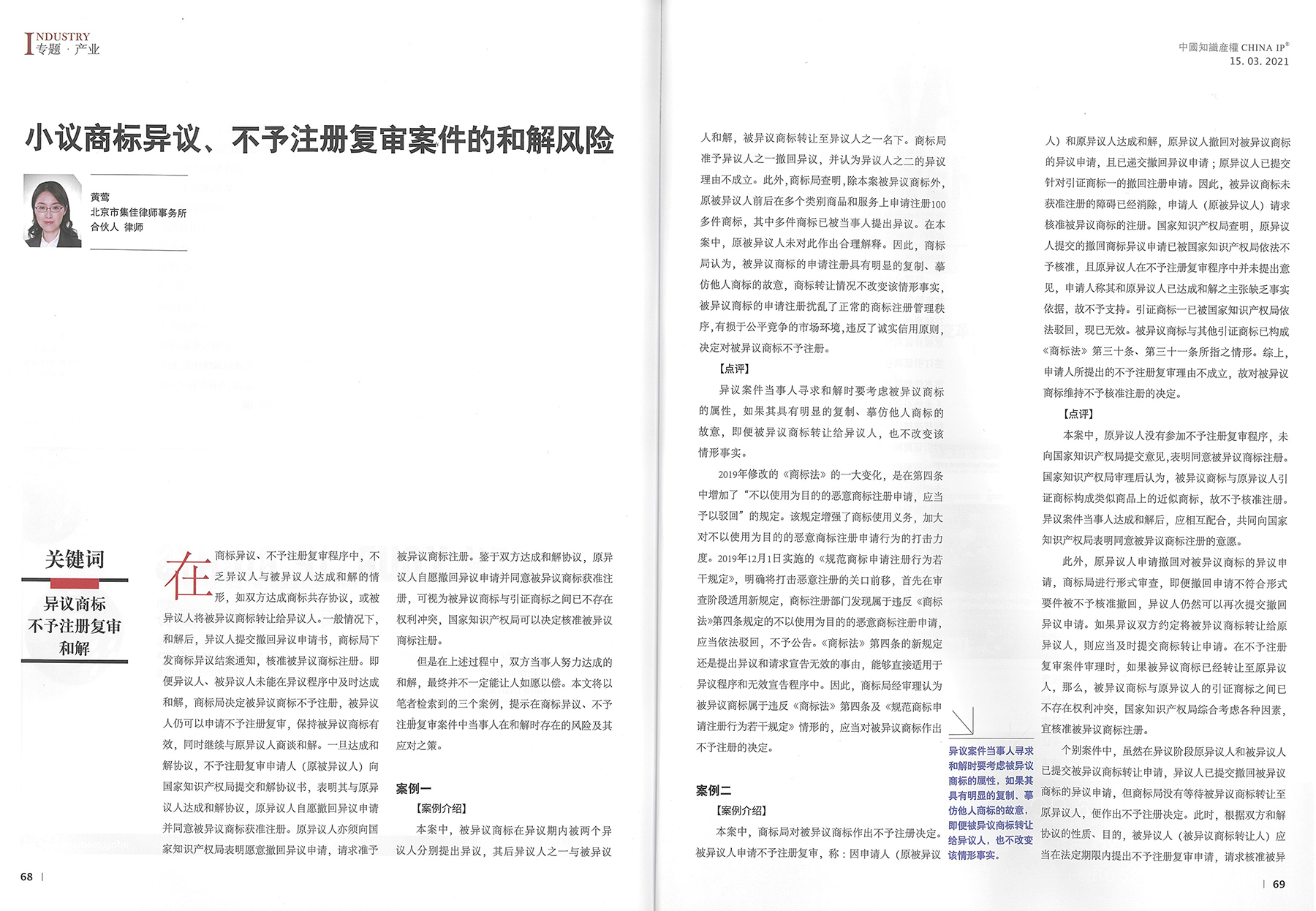 集佳文章《小議商標(biāo)異議、不予注冊復(fù)審案件的和解風(fēng)險》在《中國知識產(chǎn)權(quán)》發(fā)表