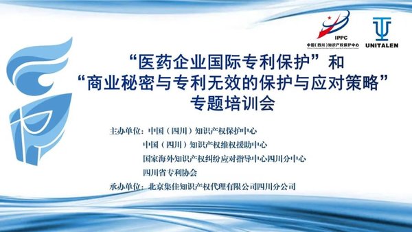 2021年5月27日,由中國(四川)知識產(chǎn)權(quán)保護中心、中國(四川)知識產(chǎn)權(quán)維權(quán)援助中心、國家海外知識產(chǎn)權(quán)糾紛應(yīng)對指導(dǎo)中心四川分中心、四川省專利協(xié)會主辦,北京集佳知識產(chǎn)權(quán)代理有限公司承辦的“醫(yī)藥企業(yè)國際專利保護”和“商業(yè)秘密與專利無效的保護應(yīng)對策略”專題培訓(xùn)分享會在成都成功舉辦。