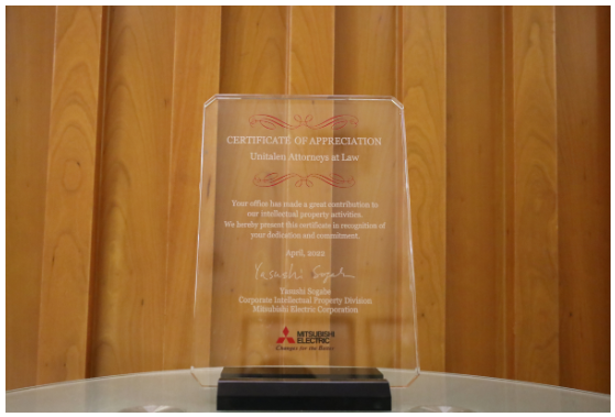 據(jù)悉,三菱電機(jī)每年在其全球范圍內(nèi)合作的事務(wù)所中評(píng)選一至兩家優(yōu)秀事務(wù)所進(jìn)行表彰,集佳是此次獲獎(jiǎng)的唯一一家中國(guó)事務(wù)所,并且是2019年以來(lái)第二次獲此殊榮。此次三菱電機(jī)表彰的事項(xiàng)為:“在為我社防止外觀設(shè)計(jì)假冒申請(qǐng)對(duì)策而提出的實(shí)用的商品目錄公證方法的提案中做出的卓越貢獻(xiàn)”。在與表彰事項(xiàng)相關(guān)的工作中,集佳人員工作專業(yè)、細(xì)致、認(rèn)真、及時(shí),得到了客戶的信任和高度評(píng)價(jià)。