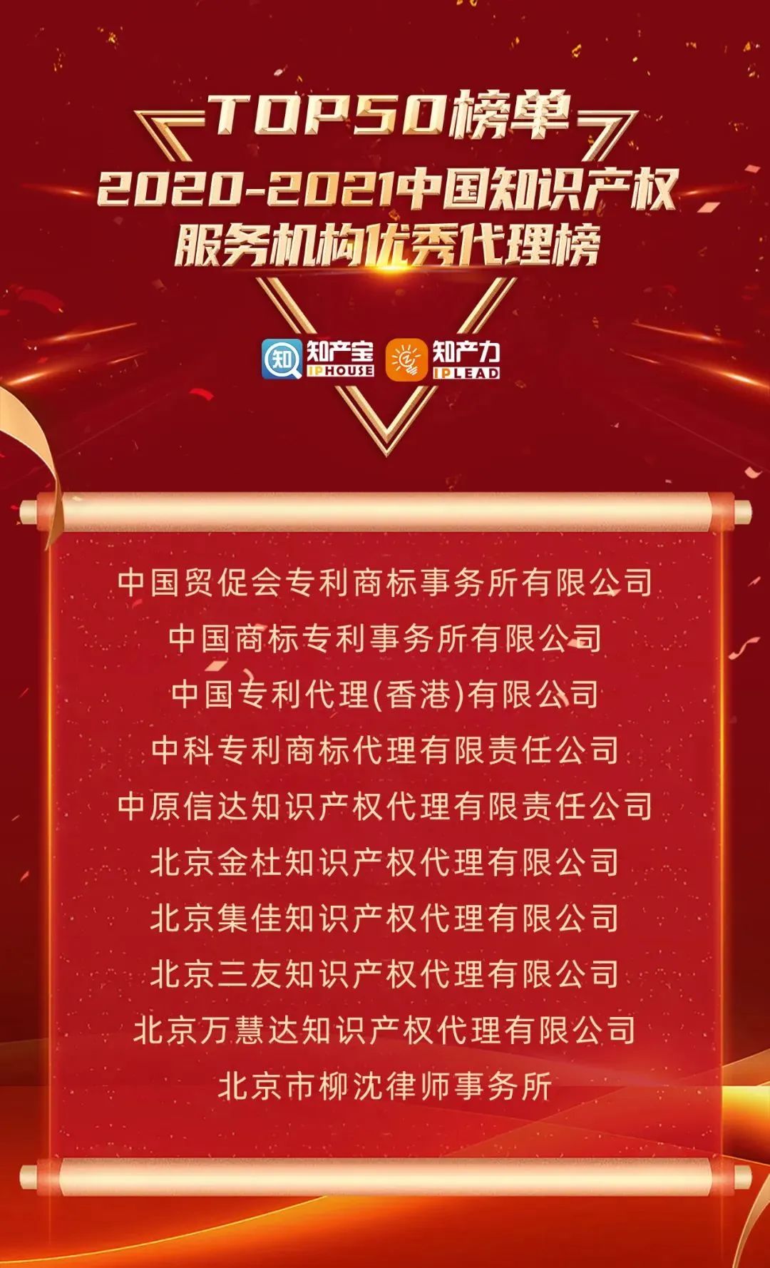 近日,知產(chǎn)寶&知產(chǎn)力重磅推出“2020-2021中國知識產(chǎn)權(quán)服務(wù)機構(gòu)優(yōu)秀代理榜TOP 50 ”。集佳知識產(chǎn)權(quán)憑借穩(wěn)定的綜合實力、卓越的專業(yè)服務(wù)及優(yōu)異的成績獲得業(yè)界的廣泛認可,榮登“2020-2021中國知識產(chǎn)權(quán)服務(wù)機構(gòu)優(yōu)秀代理榜TOP 50 ”榜單!
