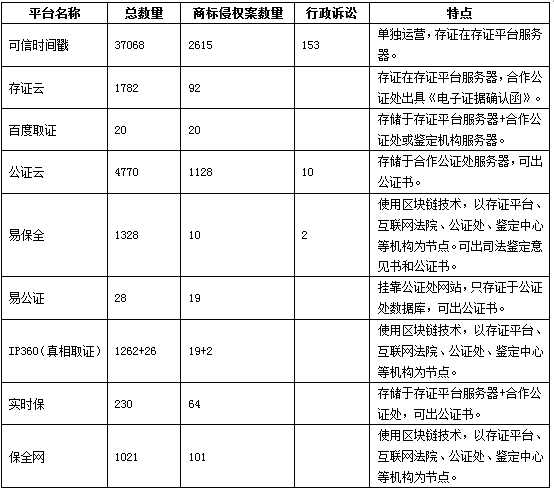 上述表格在一定程度上體現(xiàn)了各電子存證平臺(tái)的使用頻次。