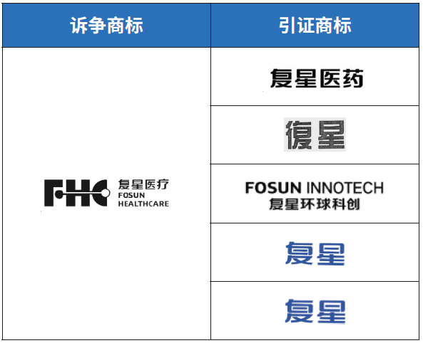 ”雖然和各引證商標均包含“復(fù)星”,但訴爭商標中包含多種構(gòu)成要素,中文部分整體為“復(fù)星醫(yī)療”,再加上其英文部分“FOSUN HEALTHCARE+FHG”,從而在商標的整體外觀、呼叫以及含義上均和各引證商標產(chǎn)生了一定的差異,降低了混淆的可能性。