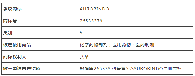 跨國(guó)企業(yè)A公司進(jìn)入中國(guó)市場(chǎng)的過(guò)程中將其長(zhǎng)期使用的標(biāo)志AUROBINDO在中國(guó)申請(qǐng)注冊(cè)商標(biāo),于2021年12月提出注冊(cè)商標(biāo)申請(qǐng),國(guó)家知識(shí)產(chǎn)權(quán)局經(jīng)審查后決定駁回注冊(cè)申請(qǐng),理由是該商標(biāo)與自然人張某在類似商品上已注冊(cè)的第26533379號(hào)“AUROBINDO”商標(biāo)近似。面對(duì)自有商標(biāo)在國(guó)內(nèi)被搶注的情況,A公司隨即向國(guó)家知識(shí)產(chǎn)權(quán)局商標(biāo)局提交撤銷三年不使用申請(qǐng),申請(qǐng)撤銷張某名下第26533379“AUROBINDO”商標(biāo)在第5類“化學(xué)藥物制劑;醫(yī)用藥物;醫(yī)藥制劑”等全部核定使用商品上的注冊(cè)。同時(shí)A公司于2022年3月申請(qǐng)駁回商標(biāo)注冊(cè)申請(qǐng)復(fù)審,以引證商標(biāo)處于撤三之中,其權(quán)利狀態(tài)不確定為由請(qǐng)求對(duì)本案予以緩裁。2022年9月,國(guó)家知識(shí)產(chǎn)權(quán)發(fā)文通知撤銷張某名下第26533379“AUROBINDO”商標(biāo)。此外,A公司也在其他與公司業(yè)務(wù)相關(guān)的商品類別上申請(qǐng)注冊(cè)“AUROBINDO”商標(biāo),完善其在中國(guó)商標(biāo)布局。目前A公司在第5類“醫(yī)藥制劑;醫(yī)用藥物;補(bǔ)藥;藥用化學(xué)制劑;醫(yī)用化學(xué)制劑;針劑;原料藥;生化藥品;片劑”申請(qǐng)的“AUROBINDO”商標(biāo)已成功注冊(cè)。