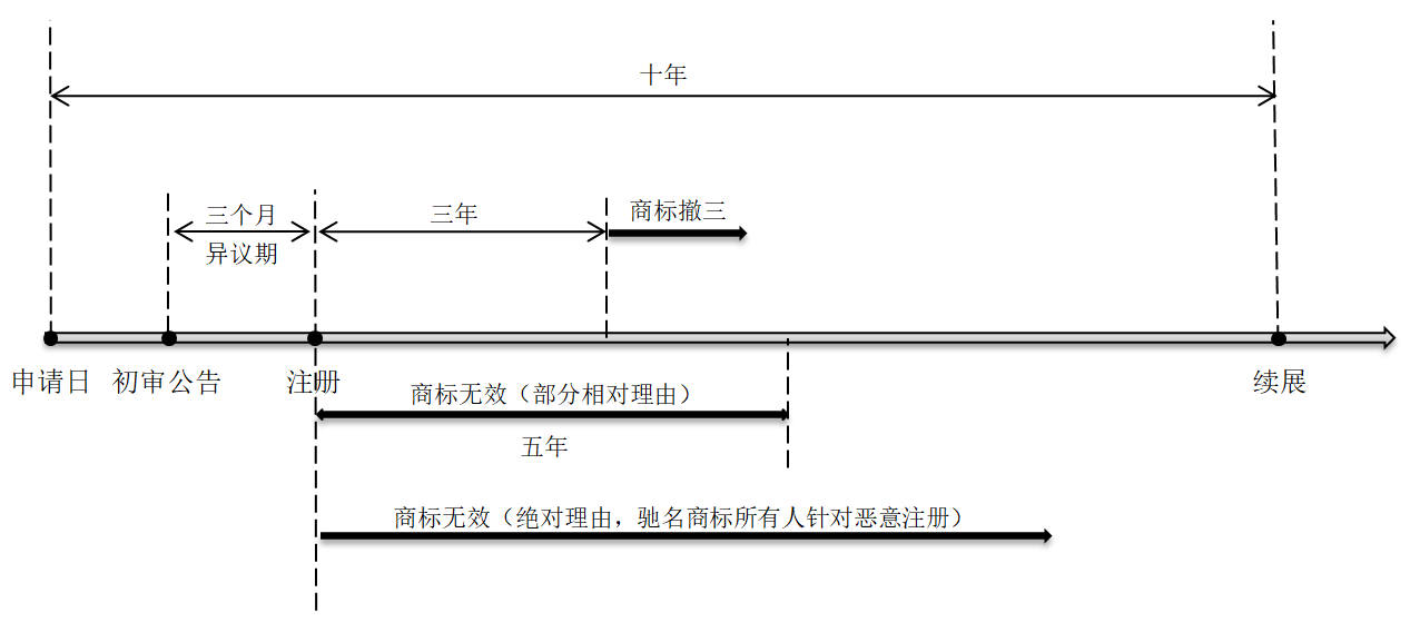 圖1 商標(biāo)法律生命周期爭(zhēng)議解決時(shí)間軸
